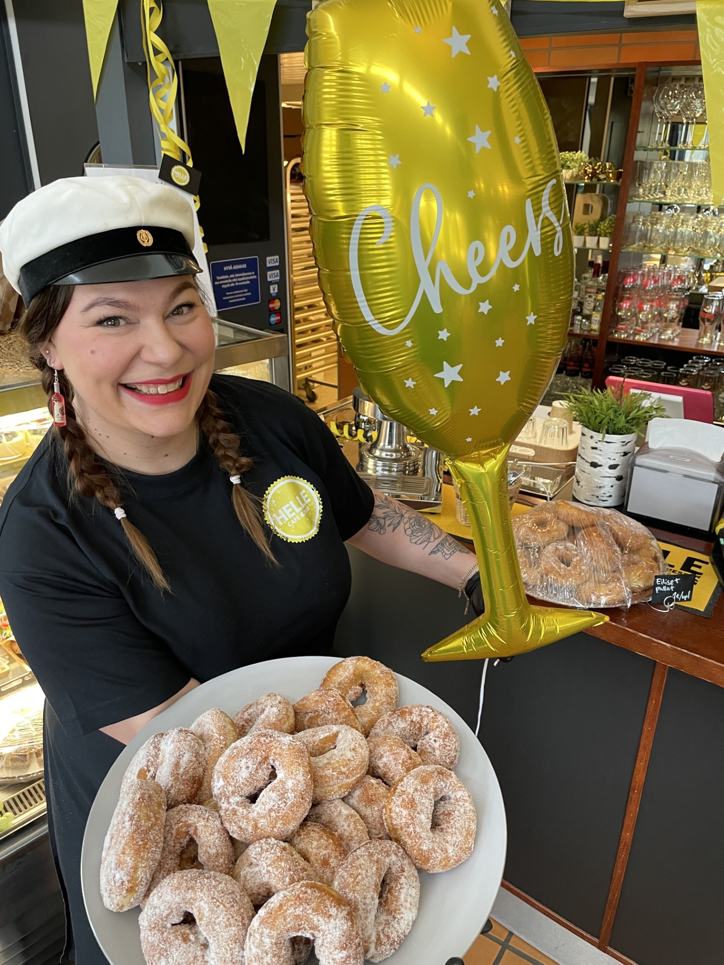 Vappu jälkkäribuffa mm. minimunkkeja, rocky road brownie, passion brita